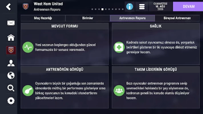 FM26 Apk oyununun antrenman sistemi hem profesyonel hem de mobil sürümde büyük ölçüde geliştirilmiştir.