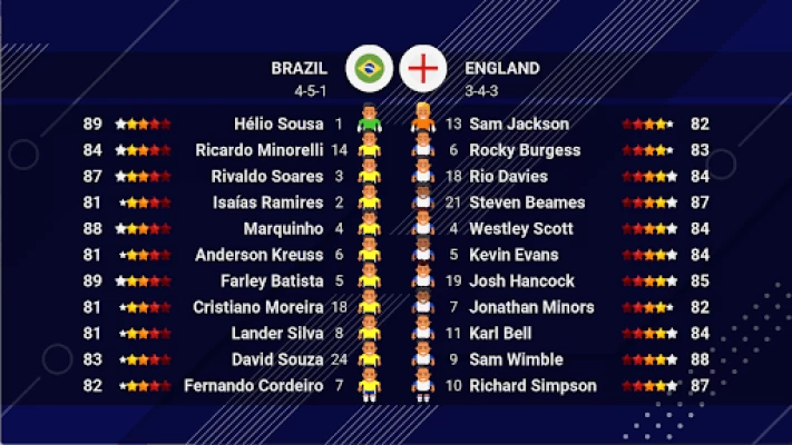 Bir takımınız olduğunda, taktiksel ayarlamalar yapmak için kullanılan oyuncuların ve taktiklerin listesini inceleyeceksiniz. Genellikle, oyuncuların çok dikkatini çeken şey, ekranın sağ köşesinde bulunan iki satın al ve sat düğmesidir, çünkü bunlar transferlerle ilgilidir ve burada yüksek beceriye sahip oyuncular bulma fırsatınız vardır. Ancak bu sadece denemeniz için bir motivasyondur ve bunu hemen yapamazsınız, ancak diğer takımlarla rekabet etmek için bir turnuvaya katılmayı deneyin. Olan her şey, takımın istatistiklerine göre otomatik olarak yapılır ve buradan, bu oyunda stratejinin ne kadar önemli olduğunu anlayacaksınız.Çeşitli sayıda maç: Oyun, gerçek hayattan esinlenen birçok turnuvayı bir araya getirir.Rakip kulüplere karşı: Birçok güçlü rakip ortaya çıktıkça mücadele her zamankinden daha zorlu hale gelir.Geleceğinizi değiştirin: Zayıf bir takımdan ünlü bir kulübe dönüşmek kesinlikle çok uzun bir yolculuktur.