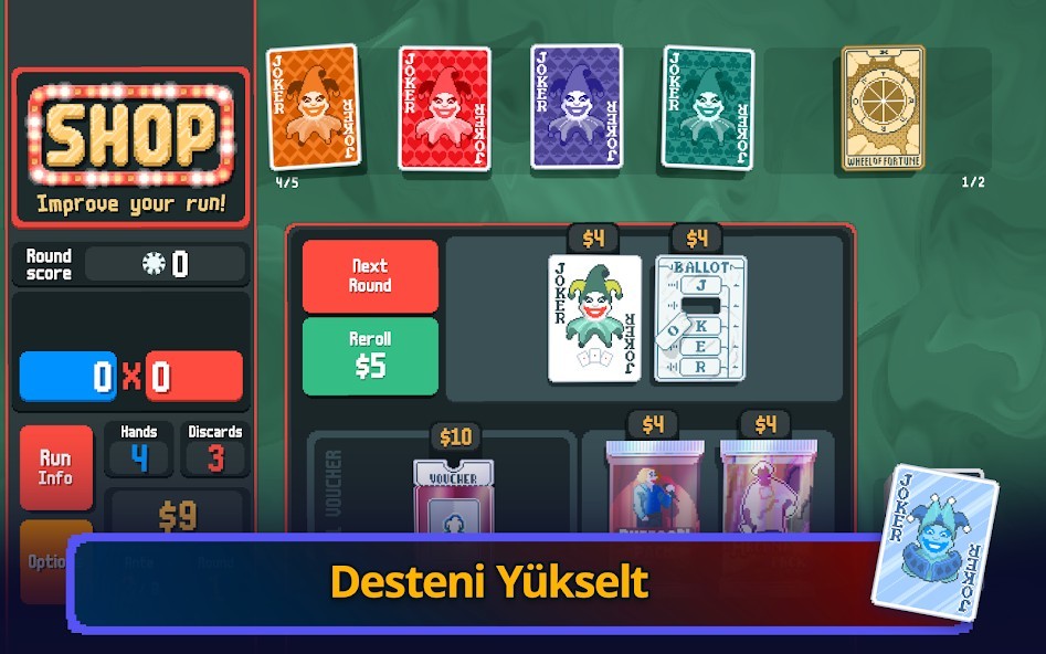 Ayrıca mod sürümü sayesinde tüm premium içeriklere anında erişebilir, kilitli kartları ve özel özellikleri zahmetsizce kullanabilirsiniz. Daha hızlı ilerleme, yüksek puanlar ve sınırsız kombinasyonlarla oyunun keyfini üst seviyede çıkarabilirsiniz. Balatro Apk mod ile rakiplerinize karşı büyük bir avantaj elde ederek her eli kolayca kazanabilir, kesintisiz ve eğlenceli bir oyun deneyimi yaşayabilirsiniz.